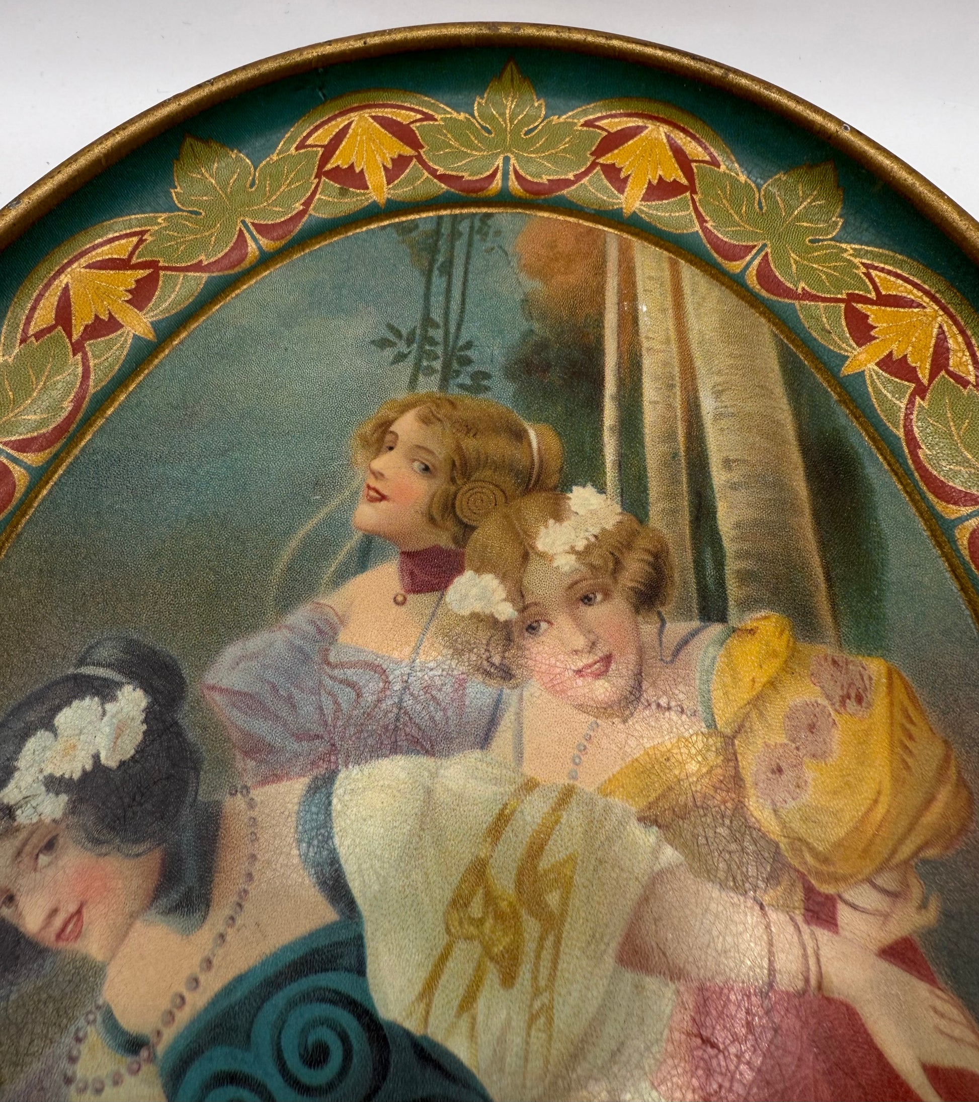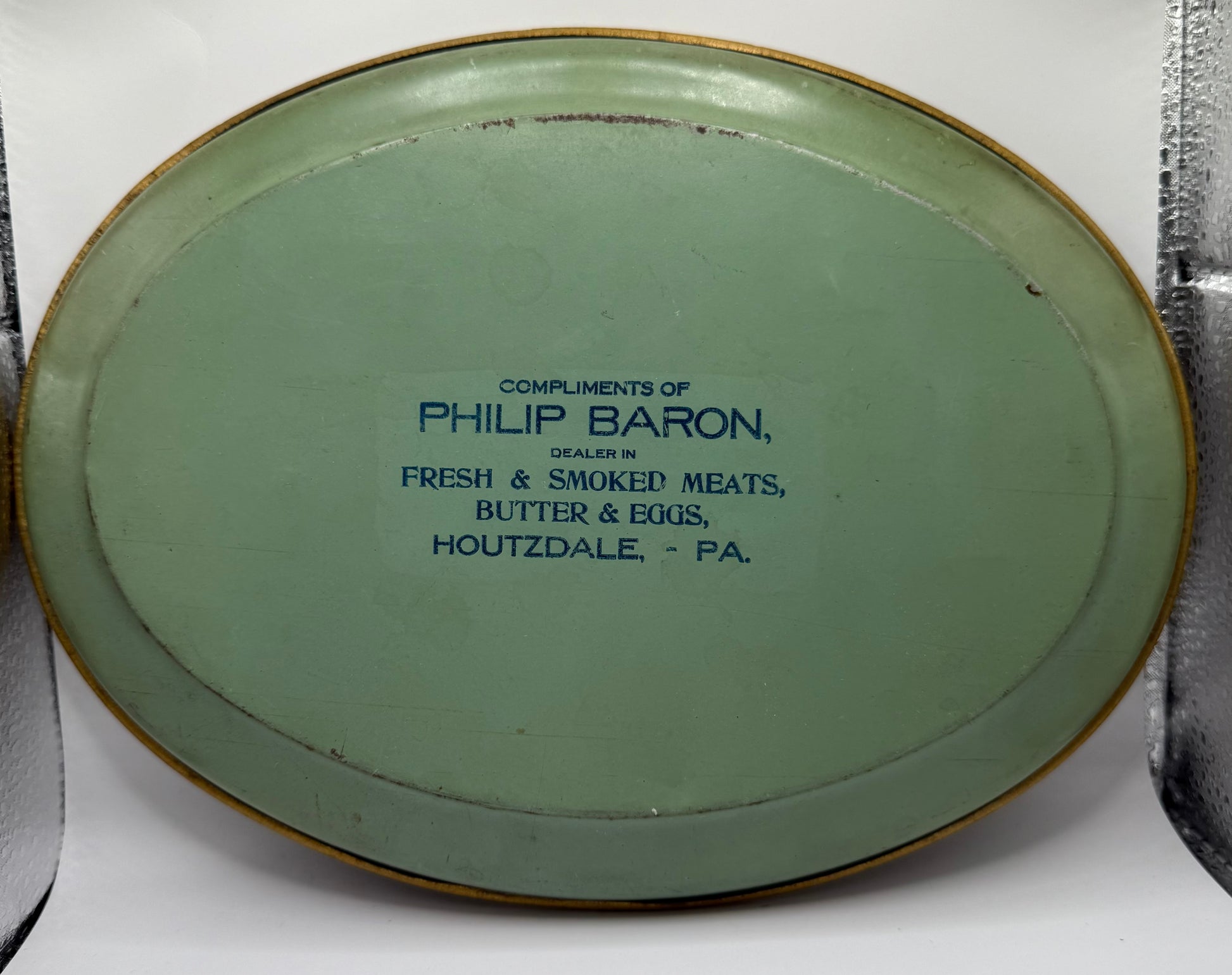 Antique Tin Litho Advertising Tray Houtzdale Pennsylvania Store Philip Baron Dealer in Fresh Smoked Meats Butter Eggs Lithograph Lovely Ladies